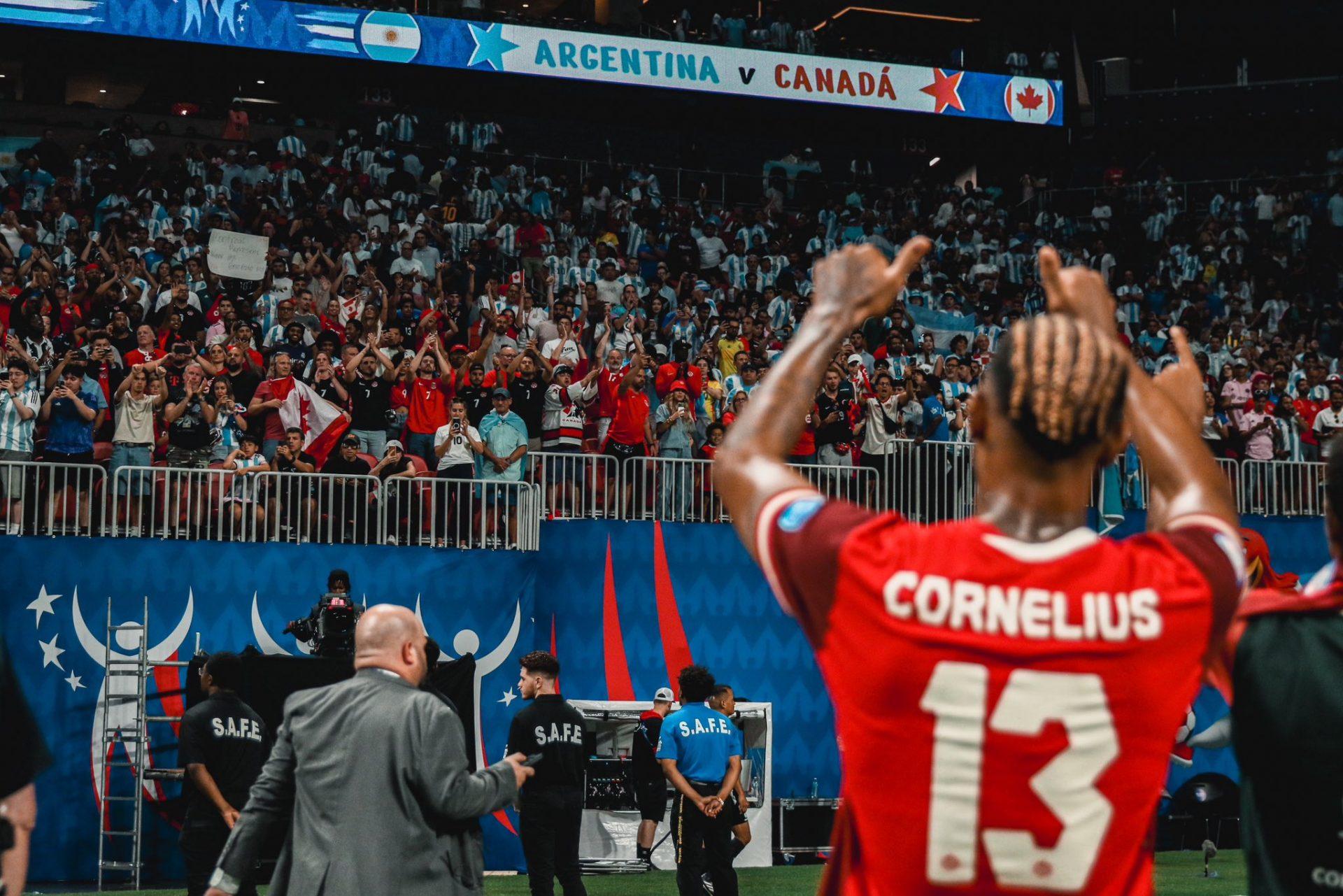 Antes del final del primer tiempo, Canadá estuvo a punto de abrir el marcador. Tras un desborde por la banda derecha, Eustaquio remató de cabeza un centro, pero Emiliano «Dibu» Martínez hizo una gran atajada.