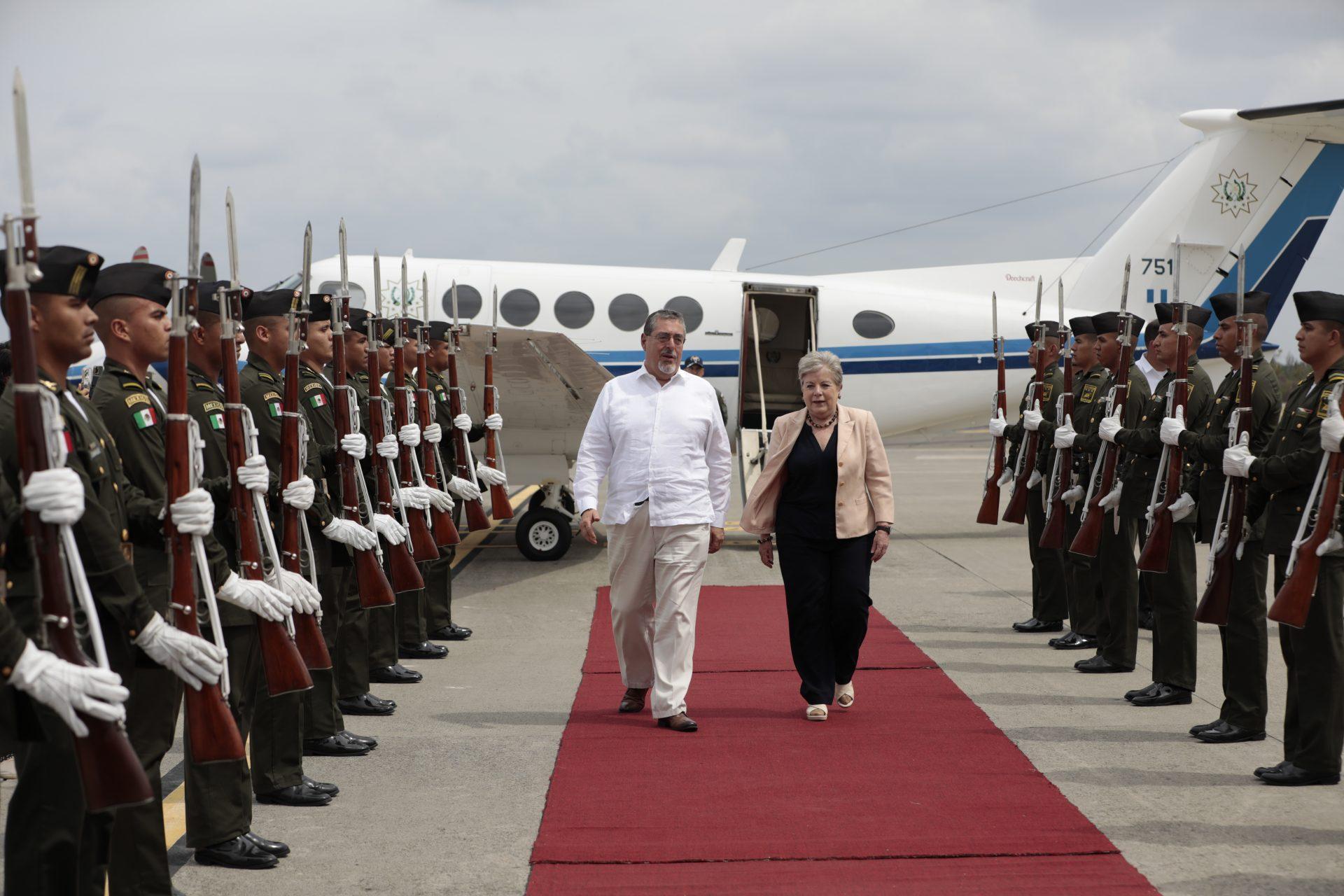 El presidente Arévalo llegó está mañana al aeropuerto de la ciudad de Tapachula, donde fue recibido por la secretaria de Relaciones Exteriores de México, Alicia Bárcenas.