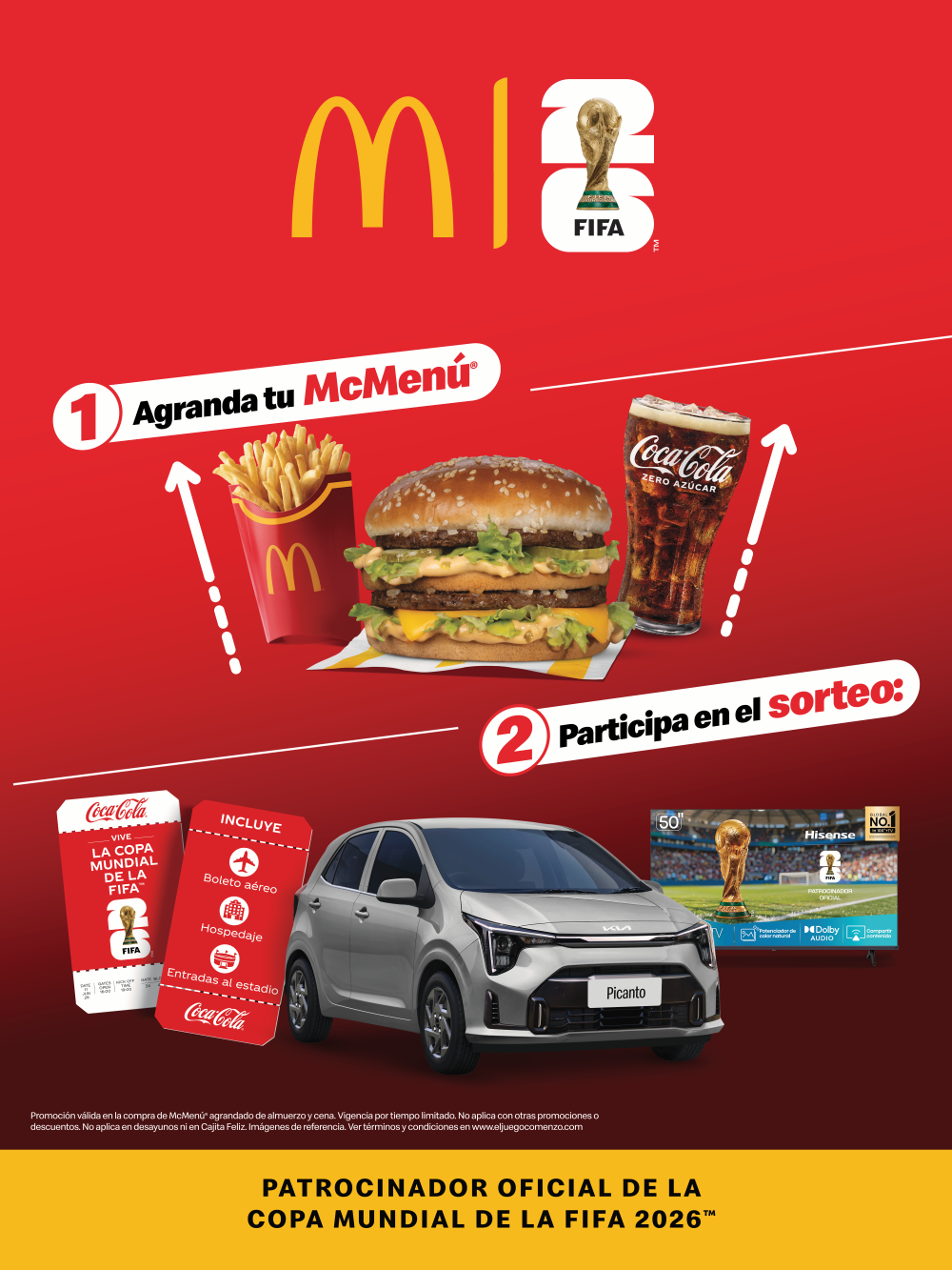 Para agradecer la preferencia de sus invitados, la marca premiará a quienes compren cualquier McMenú agrandado de almuerzo o cena. Al final de cada factura se incluirá un código alfanumérico, que deberá ser registrado en la App de McDonald’s para participar en sorteos de viajes a la Copa Mundial de la FIFA 2026™, vehículos Kia Picanto y televisores Hisense. En Guatemala se realizarán 4 sorteos en las siguientes fechas: 21 de abril, 5 y 19 de mayo; y 9 de junio.